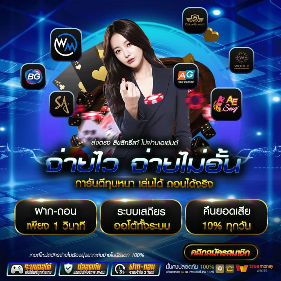 ตอบ : ระบบฝาก-ถอนอัตโนมัติ รวดเร็วภายใน 30 วินาที รองรับทุกธนาคาร และทรูวอลเล็ท ฝากขั้นต่ำเพียง 1 บาท
